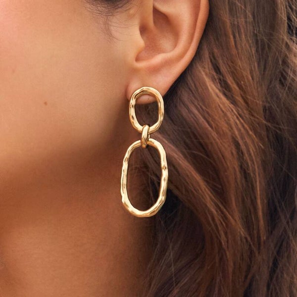 Baño de oro en tono bronce semibrillante de 24 quilates. Largo aprox. 6.4 cm. (con poste).